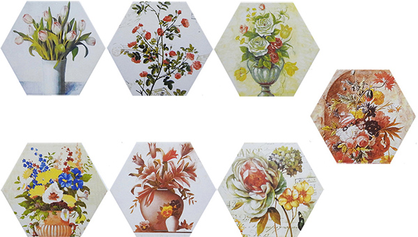 200 X 230 MM Hexagon Ceramic Tiles Modern Style Painting Flower Pattern Images |